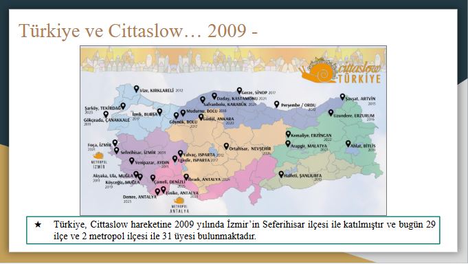 Sunum, Cittaslow Türkiye temsilcilerinden M. Buse Kalender Gök ile başladı. Gök sunumunda; Cittaslow’un temel ilkeleri, Cittaslow Metropol yaklaşımı, Cittaslow Türkiye’nin kurumsal yapısı ve yönetim modeli ile ulusal ağın gelişim sürecini ele aldı. Ayrıca aday ve üye ilçelere sunulan destek mekanizmaları, yürütülen çalışmalar, katılım sağlanan ulusal ve uluslararası toplantılar, etkinlik ve fuar katılımları, üyelerle gerçekleştirilen ortak projeler ile sosyal medya ve görünürlük faaliyetleri hakkında bilgi paylaştı.